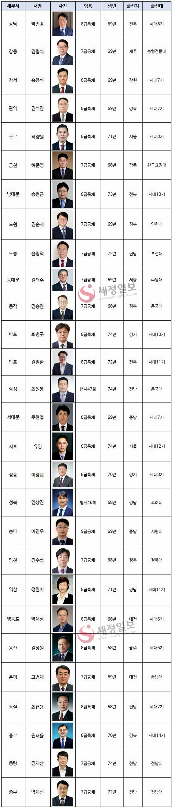 ◆서울지역 세무서장 현황