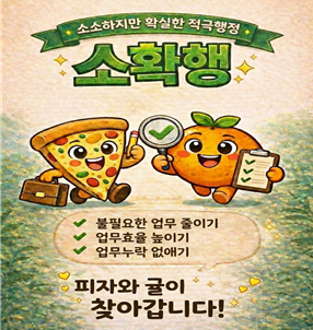 ‘재경부 소확행(소소하지만 확실한 적극행정’은 사무관 이하 실무 직원을 대상으로, 일상 업무에서 지나치기 쉽지만 성실하고 적극적 자세로 조직문화 개선에 기여한 사례를 매주 1건씩 발굴하는 제도다. 선정된 직원에게는 ‘소확행 피자’나 ‘소확행 귤’ 등 간식을 제공한다.