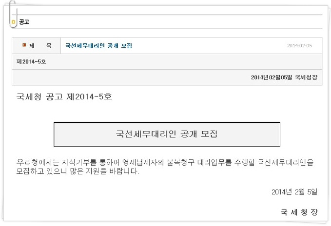 국세청은 이런 과거사를 기억하는지 향후 국선세무대리인제도의 법제화 및 국비지원을 위한 예산확보를 추진할 예정이라고 밝혔다. 두고 볼 일이다.