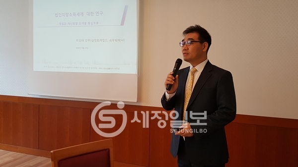 발제자로 나선 이성태 삼정회계법인 상무는 법인지방소득세의 규정부터 설문결과, 세무행정 및 제도개선에 대한 시사점 등을 상세하게 설명했다.