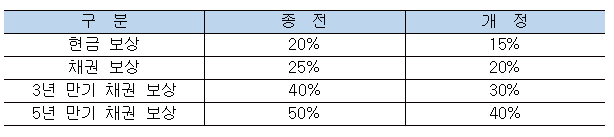 정부는 2014년 조세특례제한법 개정을 통하여 수용에 따른 양도소득세 감면율을 기존 20%에서 15%로 소폭 인하하였다. 이는 점차 시가에 근접해가는 보상금액을 고려하여 과도한 감면율을 조정하기 위함이다. 더불어 채권으로 보상받는 경우 25%에서 20%로, 3년 만기 채권의 경우 40%에서 30%로, 5년 만기 채권의 경우 50%에서 40%로 각각 인하하였다.