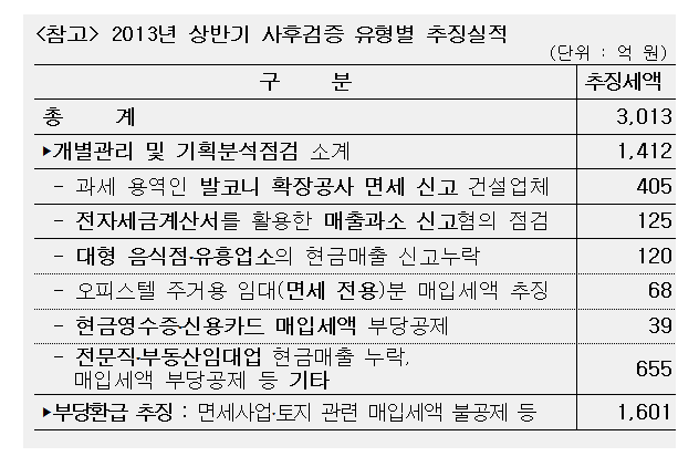 ◆’13년 상반기 사후검증으로 총 3,013억 원의 부가가치세 추징